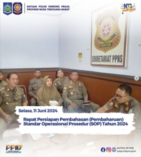 Halo sobat praja! Bidang Penegakan Peraturan Daerah dan Bidang Tibumtranmas melaksanakan rapat persiapan pembaharuan Standar Operasional Prosedur (SOP) terkait dengan Bidang P2D dan Bidang Tibum. Selasa, 11 Juni 2024 di ruang rapat Satpol PP Prov NTB