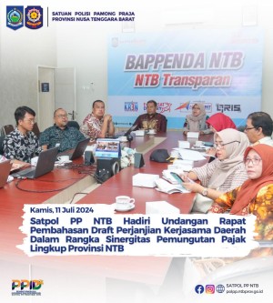 Satpol PP NTB Hadiri Undangan Rapat Pembahasan Draft Perjanjian Kerjasama Daerah Dalam Rangka Sinergitas Pemungutan Pajak Lingkup Provinsi NTB