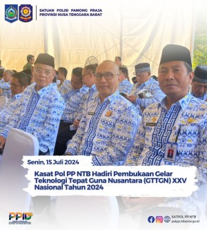 Halo sobat praja!! Kasat Pol PP NTB, Subhan Hasan hadiri rangkaian pembukaan Gelar Teknologi Tepat Nusantara (GTTGN) XXV Nasional Tahun 2024 dimana Provinsi NTB menjadi tuan rumah, berlokasi di Hal Lapangan Masjid Hubbul Wathan Islamic Center NTB, Senin pagi (15/07/2024).