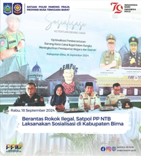 Satpol PP NTB berupaya optimal dalam melakukan pemberantasan rokok ilegal di Kabupaten Bima dengan melaksanakan sosialisasi ketentuan di bidang cukai.
