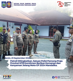 Dipimpin langsung oleh Kabid Tibumtran, giat patroli yang diikuti sekitar 16 anggota tersebut merupakan tindak lanjut dari instruksi PJ Gubernur NTB sebelumnya terkait komitmen pemprov NTB untuk memberikan kenyamanan sekaligus jaminan keamanan bagi penonton Moto GP khususnya di sekitaran Kawasan Ekonomi Khusus Mandalika.